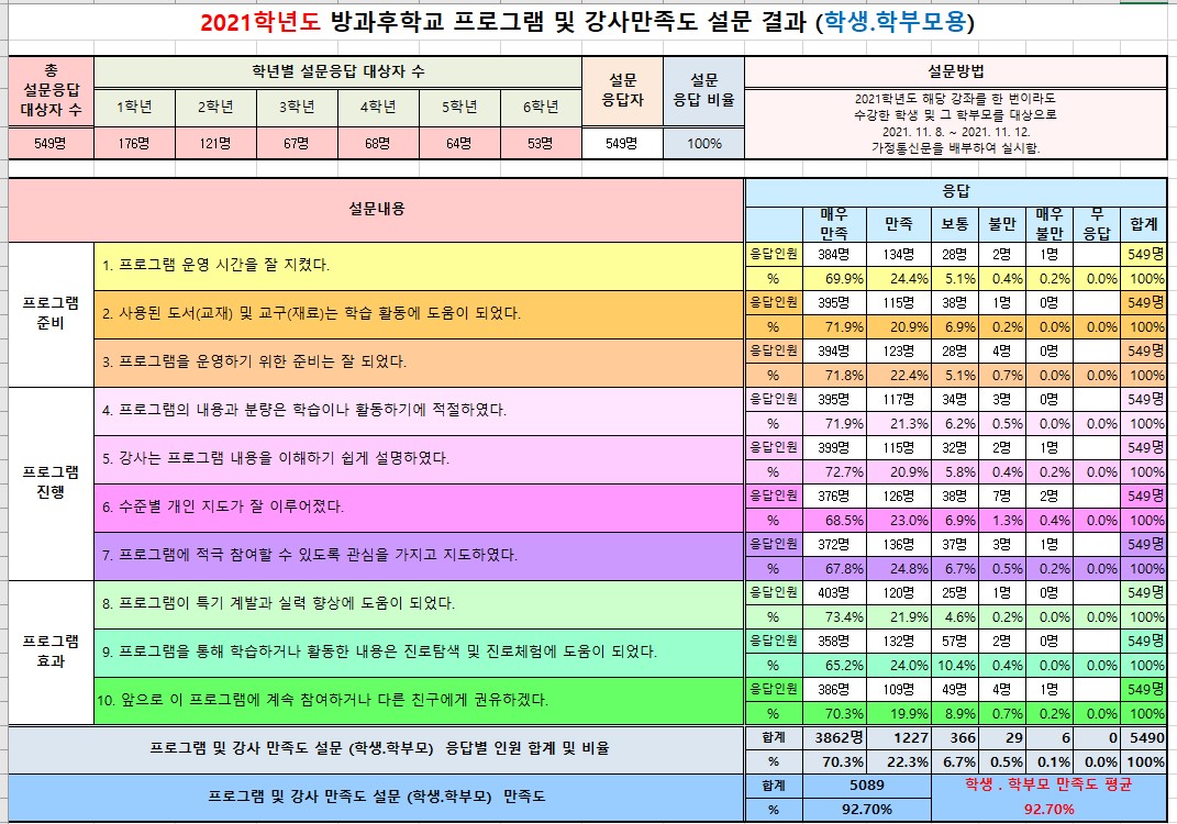 2021. 방과후학교 프로그램 및 강사 만족도 조사 - 문항별 설문 결과